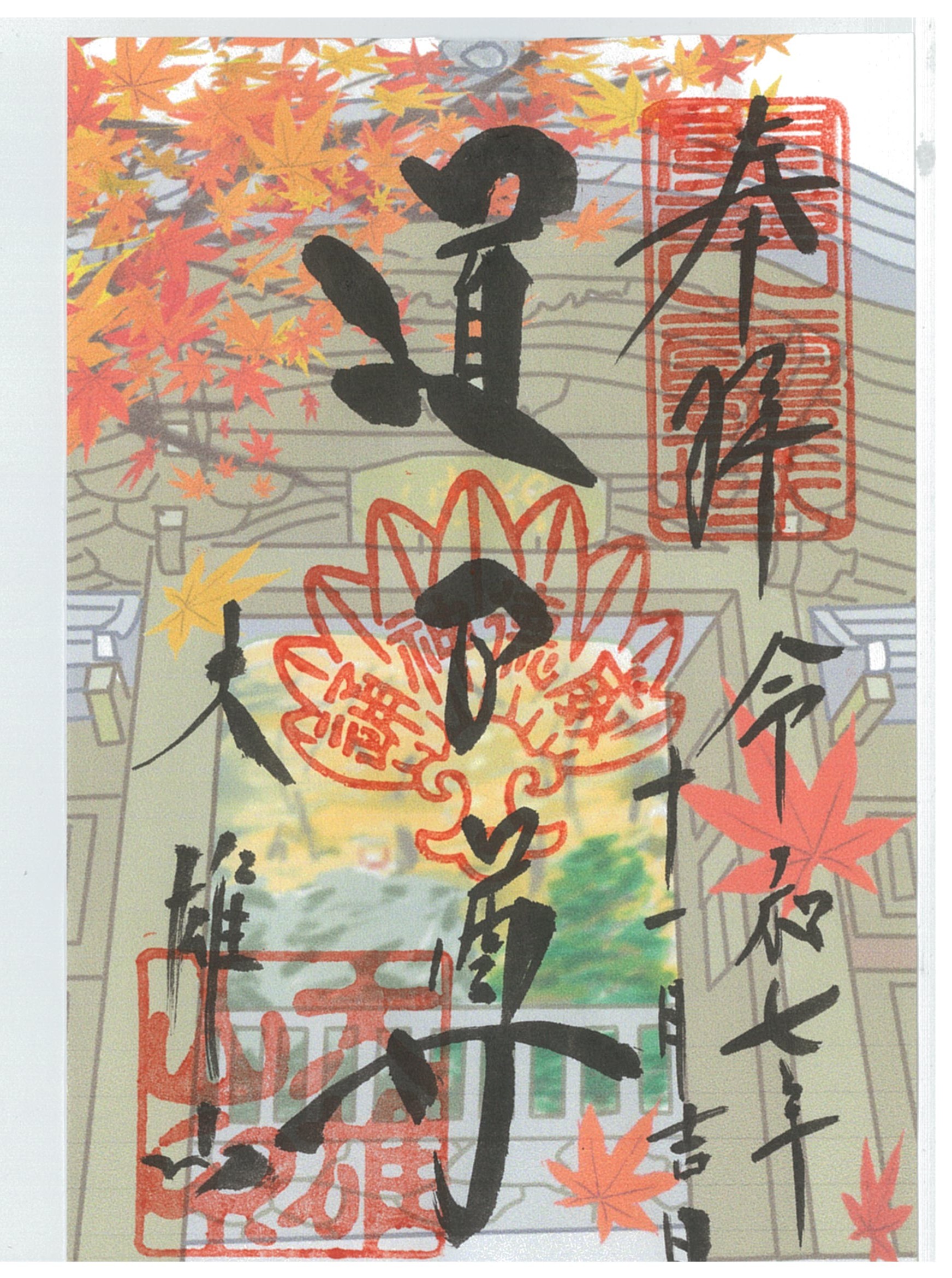 その結界門と秋に色づく紅葉の様子を描いた御朱印になります。
