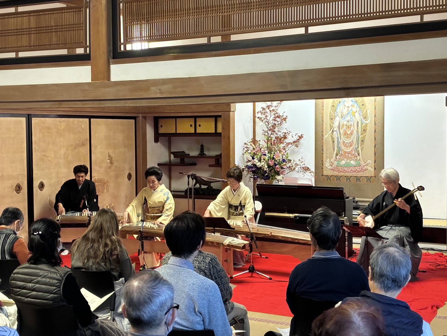 会場には多くの方にお運びいただき、秋の澄んだ空気の中、箏(こと)と三絃(さんげん)の演奏会が厳かに行われました。