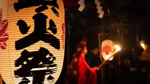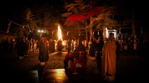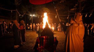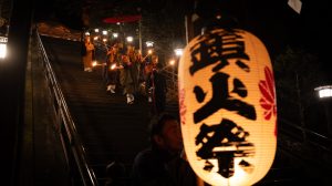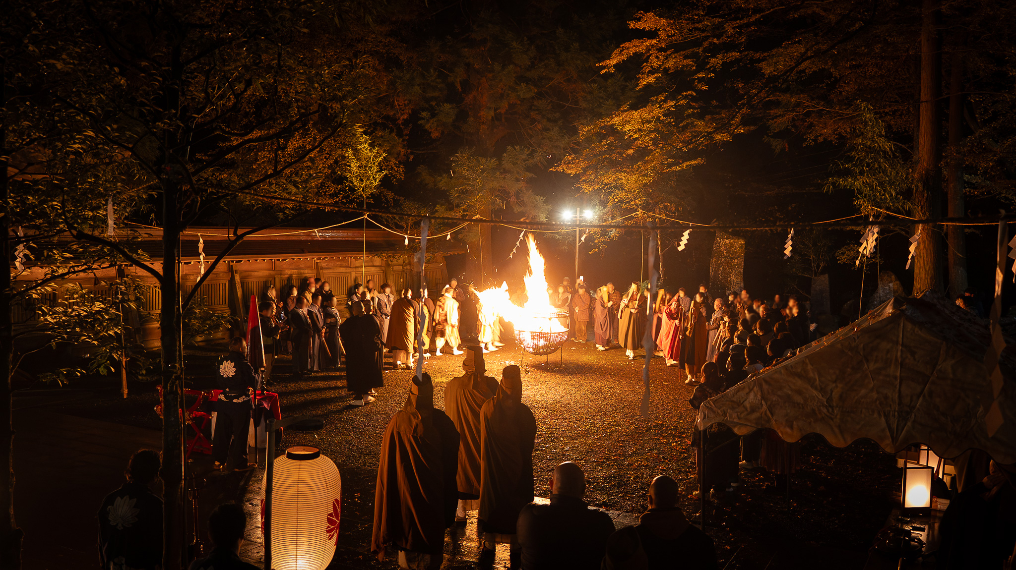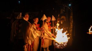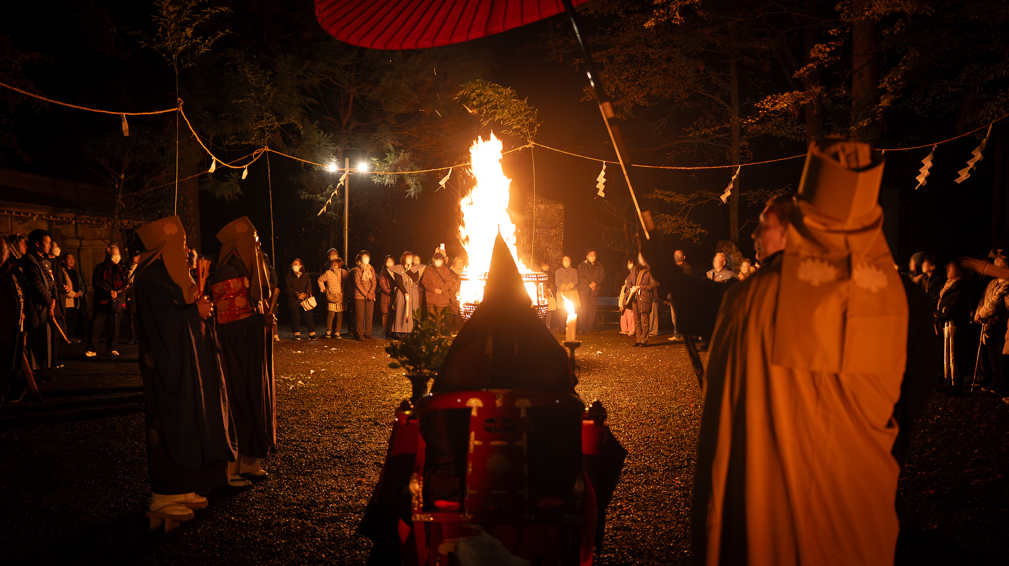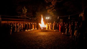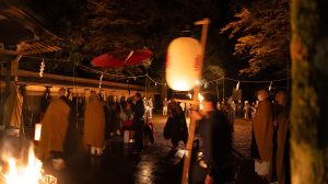 鎮火士により晩秋の夜空を赤く染め上げ粛々と鎮火祭は執り行われました。