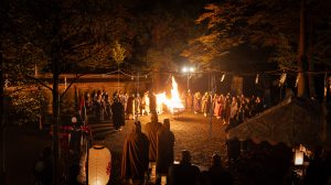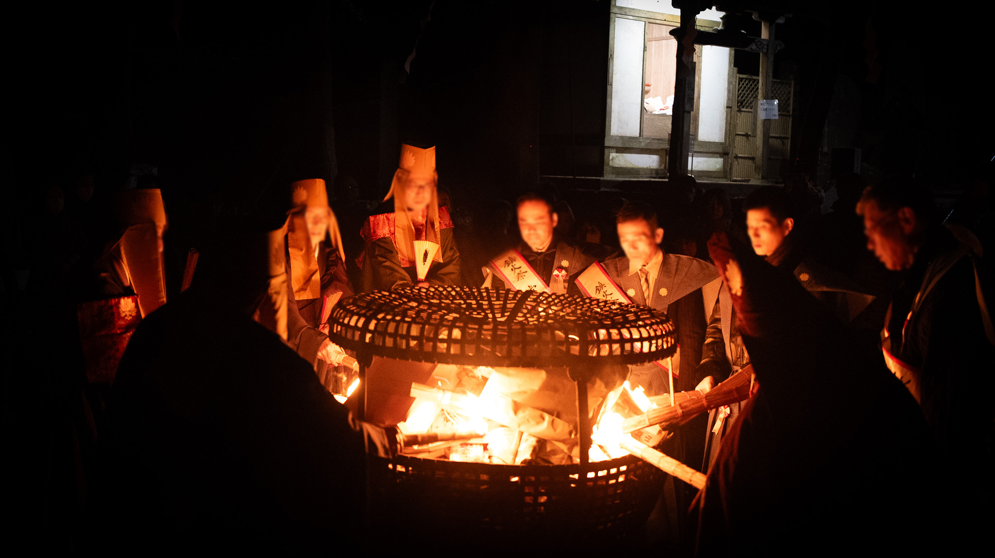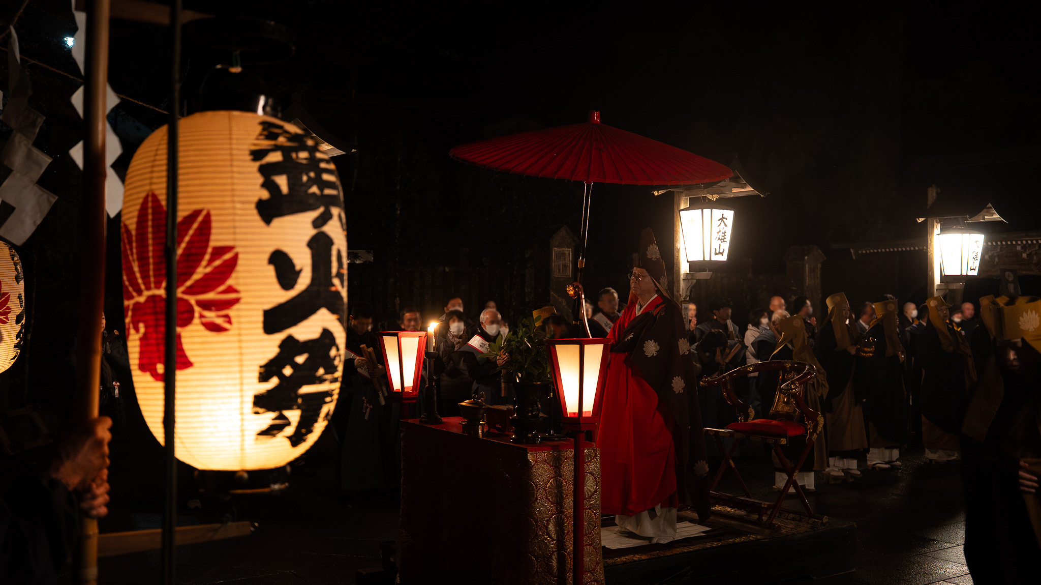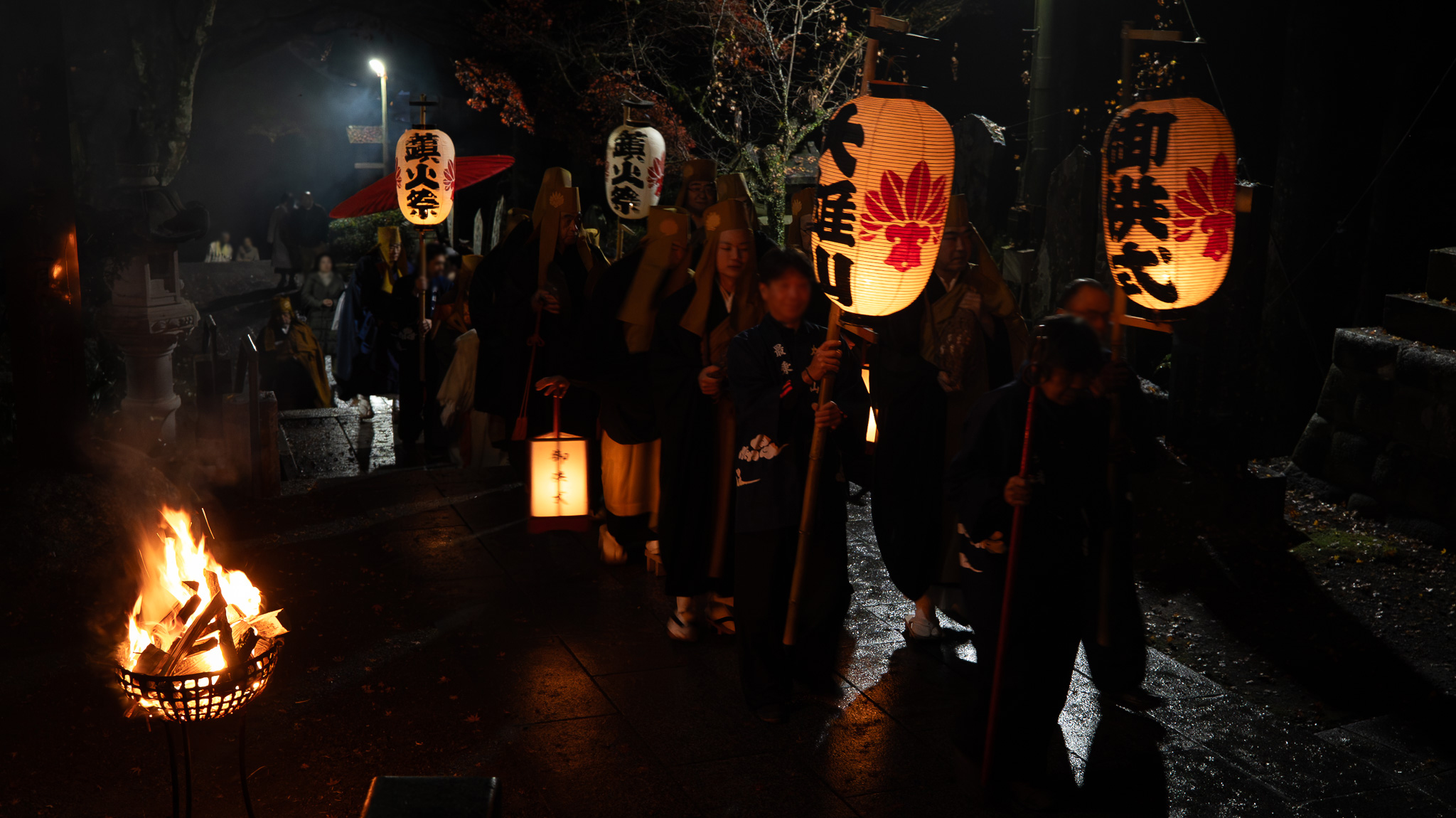鎮火士により晩秋の夜空を赤く染め上げ粛々と鎮火祭は執り行われました。