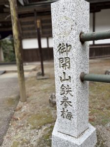 「鉄拳梅」という力強い名前は、春になっても花が咲かず、開山の鉄拳を幹に受けて咲いたと言われる梅です。