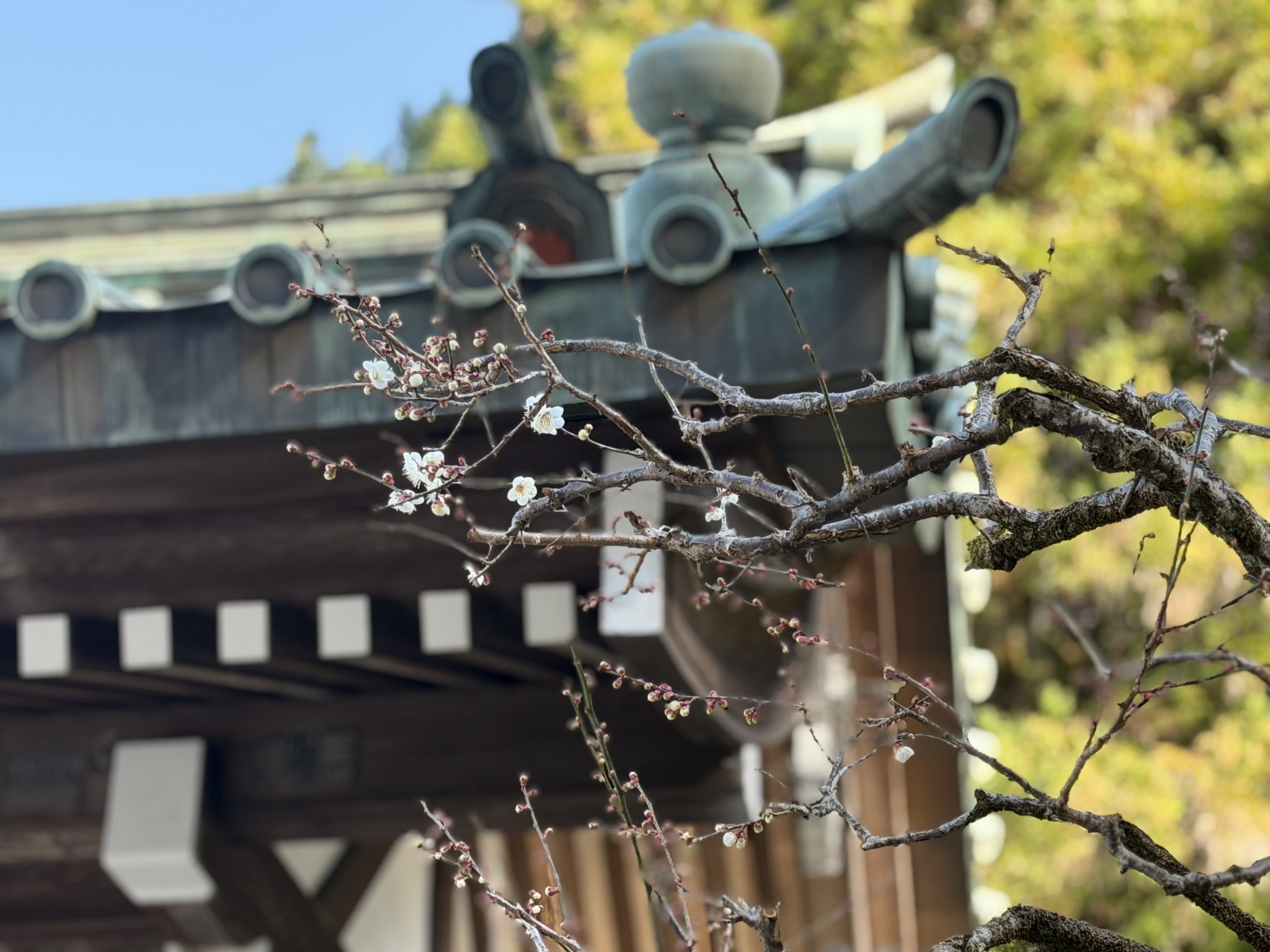 境内に鉄拳梅(てっけんばい)が咲き始めました